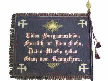 der Forderseite ein Wappen und es steht: - Gewerkschaft Wendisch Drehna Glück - aufihr geschrieben. Die Rückseite ziehrt ein Spruch, der lautet: - Edles Bergmannsleben herrlich ist dein Lohn Deine Werke geben Glanz dem Königsthron -