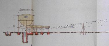 derselben beträgt 34 Meter. Angetrieben wurde sie durch eine 75 PS starke, liegende Dampfmaschine, die auch eine unterirdische Kettenbahn antreiben sollte.