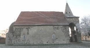 Den Höhepunkt bildet aber die wohl aus dem Ende des 12. Jahrhundert stammende Feldsteinkirche. Die einzigartige Turmkonstruktion macht die Dorfkirche zu einem der bedeutendsten Baudenkmäler der Niederlausitz. Der auf zwei Feldsteinsäulen ruhende Unterbau des Turmes ist durch hohe Spitzbogenarkaden aus Feldsteinmauerwerk errichtet und gleicht einer offenen Vorhalle. Gekrönt wird der Turm durch einen aus Backsteinen errichteten achtseitigen Helm, der als Glockenträger dient.